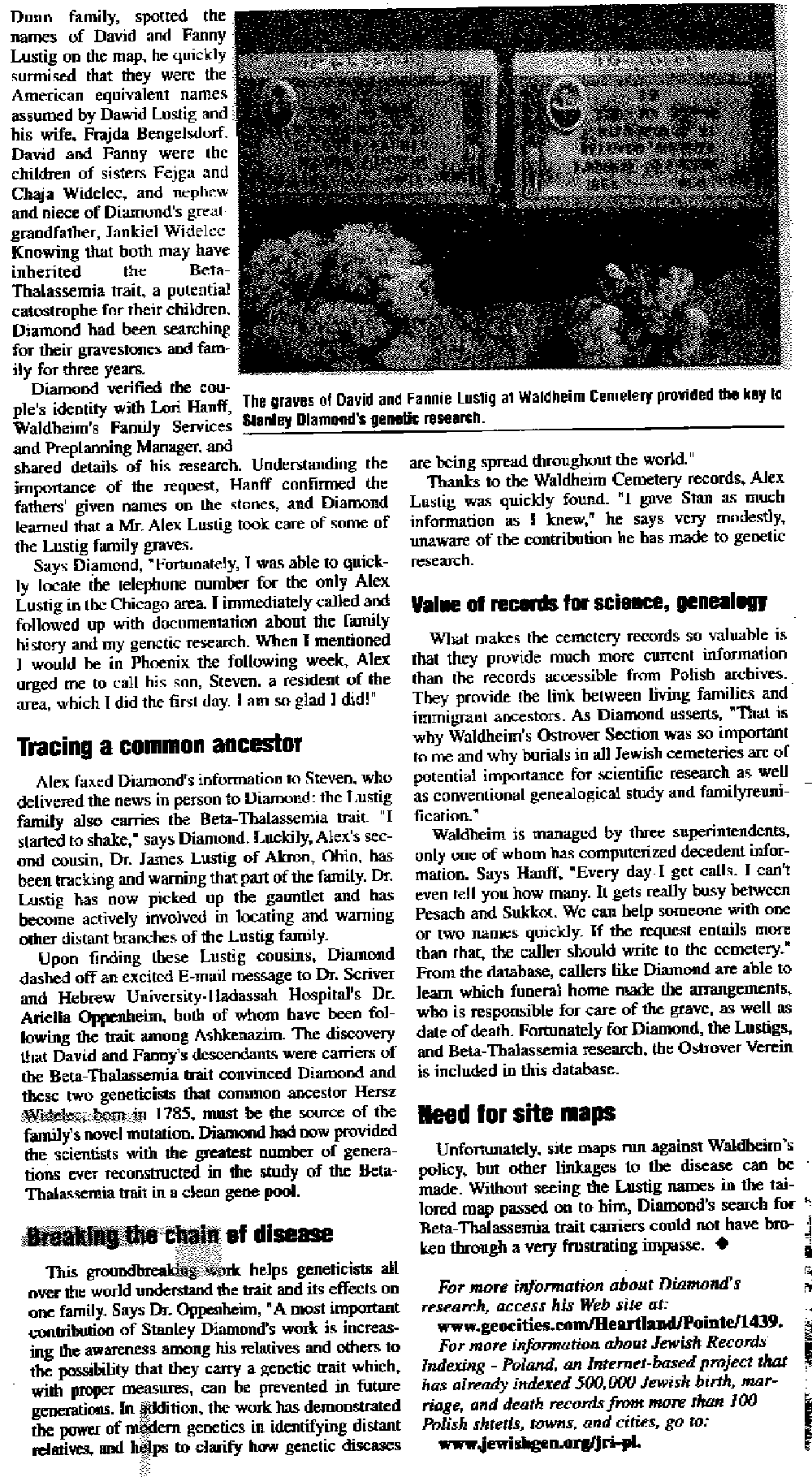 · Waldheim Cemetery· Breakthrough announced